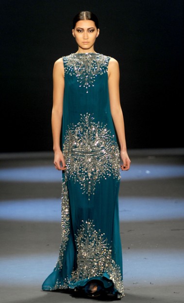 Mercedes Benz Fashion Week 2011 – Exotic flute and drum music transported me to a far away land and made my heart race in expectation of Naeem Khan‘s show, which more than met my expectations.
