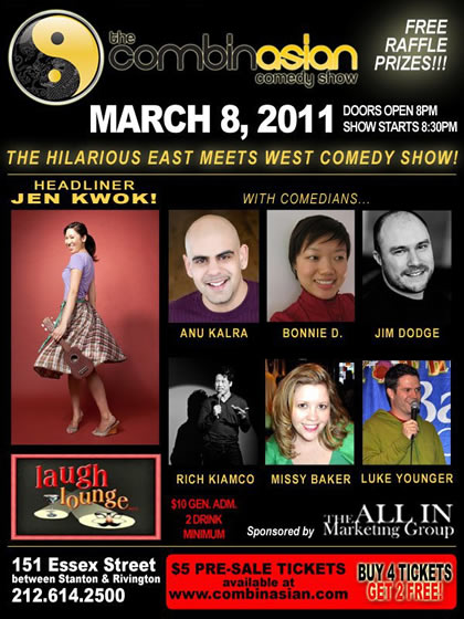 The CombinAsian Comedy Show is a monthly stand-up comedy show combining Asian-American comedians and other comedians for a night of non-stop laughter! The show is perfect for dates, a night out with friends and family, or after work fun with co-workers!