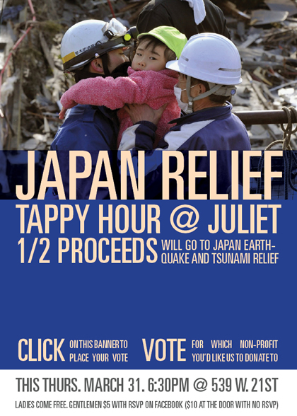 Also in the wake of the earthquake and tsunami disaster in Japan, 1/2 of all proceeds collected will go to Japan Earthquake and Tsunami relief.