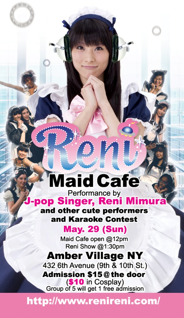 J-pop Singer, Reni Mimura offers Moe style performances, a genre that emphasizes the cute look of Japanese pop-culture with the hip appeal of Japanese animation.