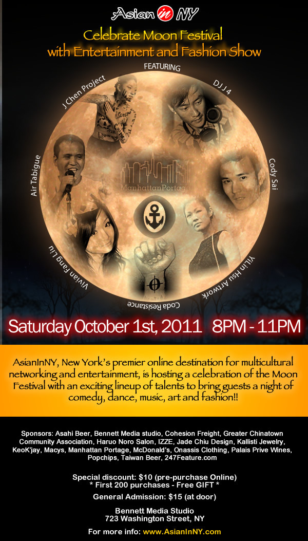 「亞洲人在紐約」將於10月1日星期六舉辦中秋節晚會.當日有許多世界及美國當地受歡迎的表演藝人參與及二場難得一見的時裝服裝秀.