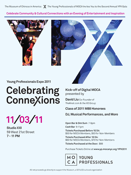 The Young Professionals eXpo (YPX) is the annual marquee event presented by the Museum of Chinese in America and the Young Professionals (YPs) of MOCA. Last year, YPX 2010 brought nearly 300 of New York City’s young professionals together to celebrate Asian American culture, creativity and couture.
