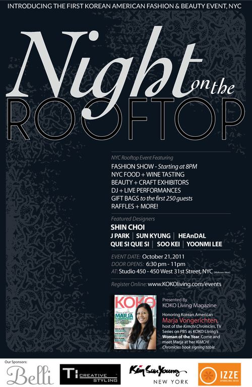 KoKoliving is hosting the First Annual Korean American Fashion Show & Beauty Event in NYC and you’re invited!! Its a night for you and your date or group of girlfriends can come together for Free Food, Music and a Fabulous Fashion Show. There’s also shopping with our exhibiting vendors. Try on designer fashions, beauty products, accesories and more!