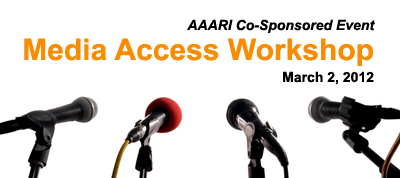 Please join the Asian American / Asian Research Institute (AAARI) for a co-sponsored event, Media Access Workshop, by the Asian American Journalists Association of New York (AAJA-NY), on Friday, March 2, 2012, from 6PM to 9PM, at 25 West 43rd Street, 18th Floor, between 5th & 6th Avenues, Manhattan.