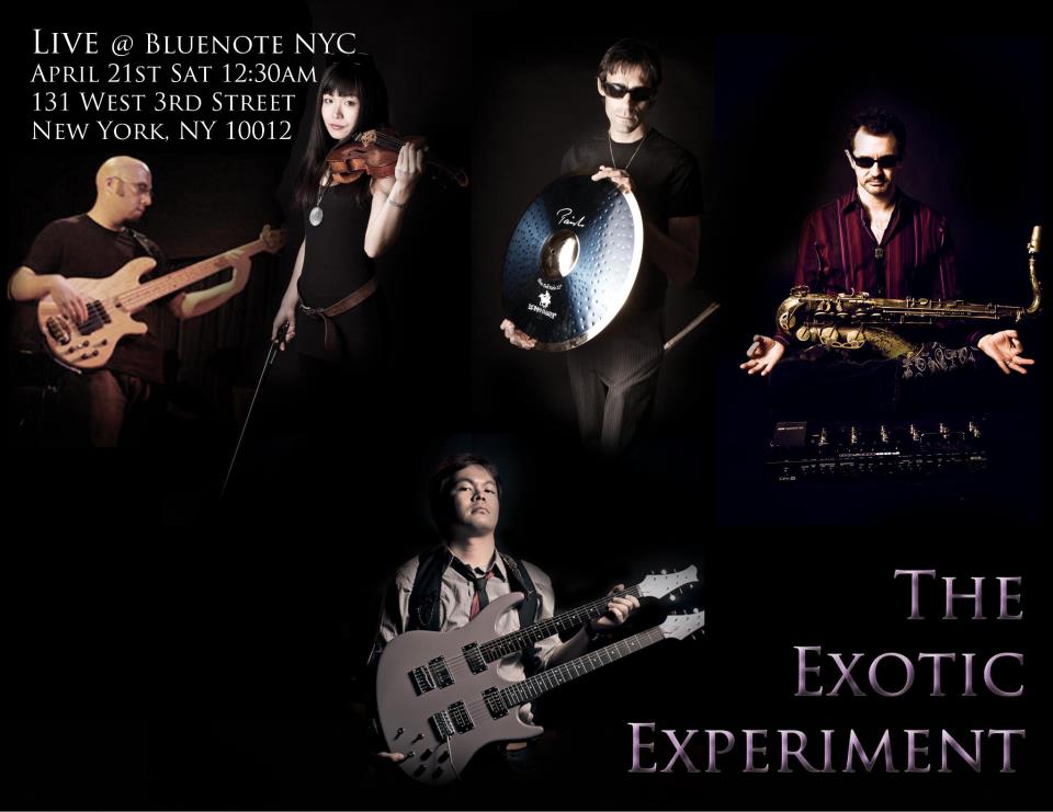 Simon C. F. Yu’s The Exotic Experiment is a futuristic ensemble that provides audiences with a multidimensional media experience. The band features a host of multitalented musicians who specialize in breaking new artistic ground. Tenor saxophonist Sean Nowell pushes the timbral boundaries of the saxophone by using cutting edge multi-effect pedals. Violinist Tomoko Omura takes her violin to another dimension using wah-wah and whammy pedals. Bassist Evan Marien has a magic ring that controls wireless dubstep effects and earth-shaking grooves, and drummer Tobias Ralph is a master of electronica and drum and bass beats.