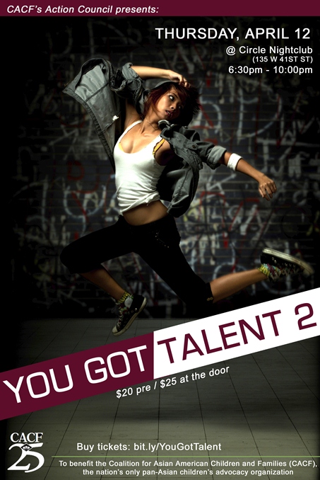 Vote for NYC’s next big thing! Enjoy singing, comedy, dancing, and more at You Got Talent 2, a fundraiser for the Coalition for Asian American Children and Families (CACF). Support your friends, discover new talent, and enjoy drink specials throughout the night. Audience voting will determine the top three acts.