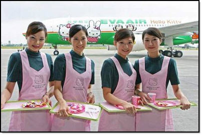 EVA links an international network of destinations worldwide, including dozens of gateways in China and throughout Asia. Hello Kitty Jet information is available in Chinese, Japanese, Korean and English at http://evakitty.evaair.com.