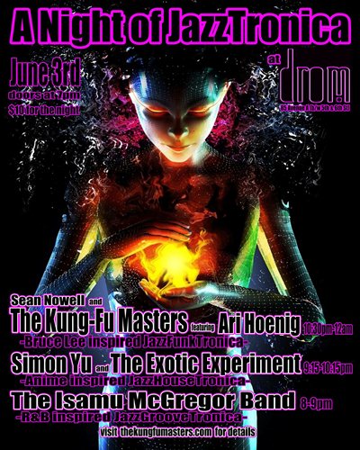 Inspired by Old School 70’s Kung-Fu Movies, Sean Nowell and THE KUNG-FU MASTERS explode onto the scene with wicked grooves, insane atari style sounds, blazing fx driven horns, and the explosive energy of one of the top drummers on the planet: Ari Hoenig. Also let’s not forget Live Visual Mixing with the most insane Kung-Fu Movie Scenes available on YouTube. Also Sound Activated LED T-Shirts. Also we’re filming it, so come get crazy!