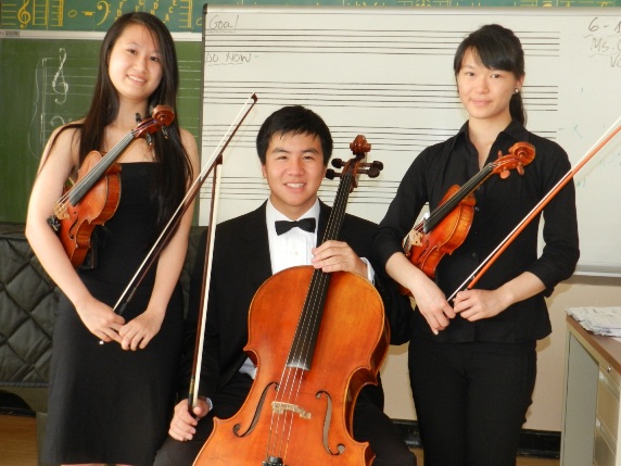 Erica Yu, 1st violin solo, Peggy Chiang, 2nd violin solo, Dylan Guo, cello solo