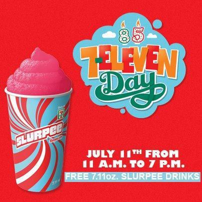 The convenience store 7-Eleven chain celebrates its 85th birthday on July 11 with free 7.11-oz. Slurpees at participating locations from 11 a.m. to 7 p.m.