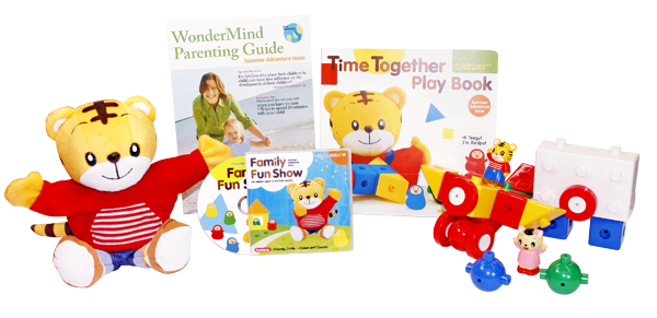 In the Toddlers 1-2 kit, the main theme of colors and shapes are introduced through the educational materials along with WoderMind’s exclusive stickers and Colorshape Blocks, which can be made into dozens of things using your imagination. Also included in the 1-2 kit is a very special tiger puppet named Teegy. Known as Shimajiro in Japan, Teegy is the official mascot of WonderMind and is recognized by children and parents throughout the country. Using the character Teegy for interactive play and pretend activities, parents can make a strong relationship by getting involved with their children, as Teegy himself “grows up” with the child over the course of WonderMind, mirroring the child’s own development and becoming more like a true friend in the process.