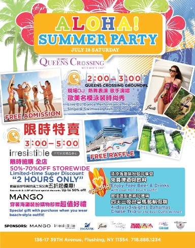 Queens Crossing will be holding the “Aloha Summer Party”. The event will be held on July, 28th (Sat) 2:00 PM to 6:00 PM. The party will have a DJ spinning, dance performances, Hip-Hop singer performances and a sizzling-hot fashion show featuring designers’ swimwear and accessories from MANGO and Swarovski.