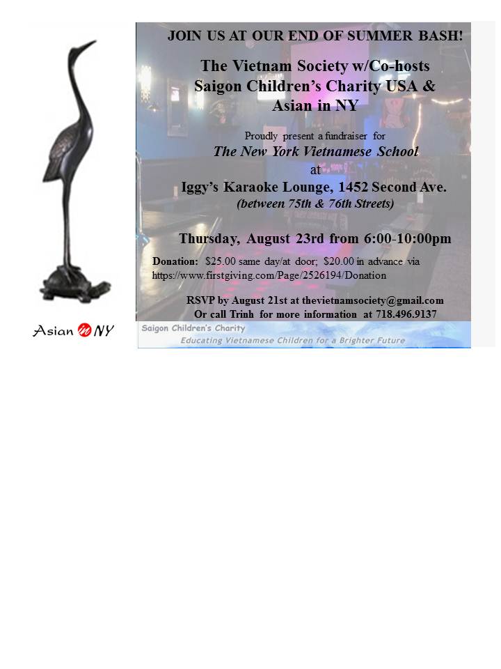 Join us at our end of Summer Bash– fundraiser on Thursday, August 23rd from 6:00-10:00PM!