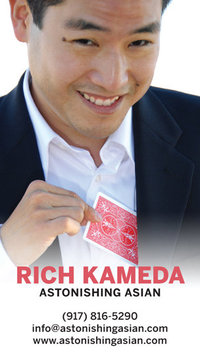 Rich Kameda is an experienced professional entertainer who brings quality magical entertainment for today’s discerning audiences. His outstanding asset is that his repertoire is bilingual performing in English and or Japanese. As a second generation Japanese–American son of a restaurateur customer satisfaction is a family tradition. Rich has performed magic for the Consulate-General of Japan in New York and the New York City Mayor’s Office. He presents his extraordinary magic with a smooth and gentle style with a charming and friendly personality. With Rich audiences experience a magical moment they’ll remember for a lifetime.
