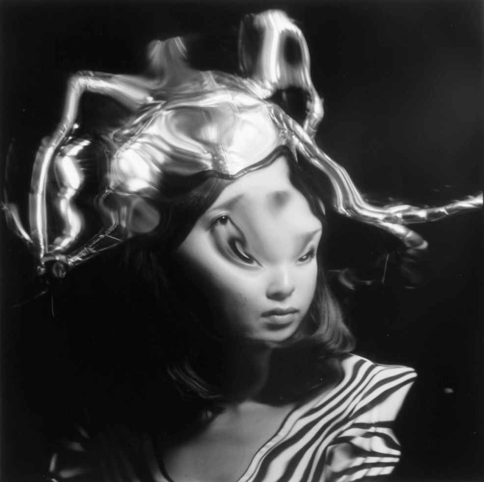By having the models’ gazes mediated through glass, Sato’s work explores (with a sense of humor) the traditional power structure between viewer and subject. In front of a black background, limbs, eyes, and facial expressions reflect, refract and transcend traditional photo-portraiture. Instead of a passive one-way relationship, Sato encourages the viewer to seek out the beauty in the model, which is often exaggerated to strange proportions. Like the girls in Yoshitomo Nara’s work, the end result is alien, humorous, and wistful.