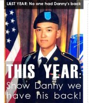 Holding posters with Danny’s picture, we remind the world that we have his back!