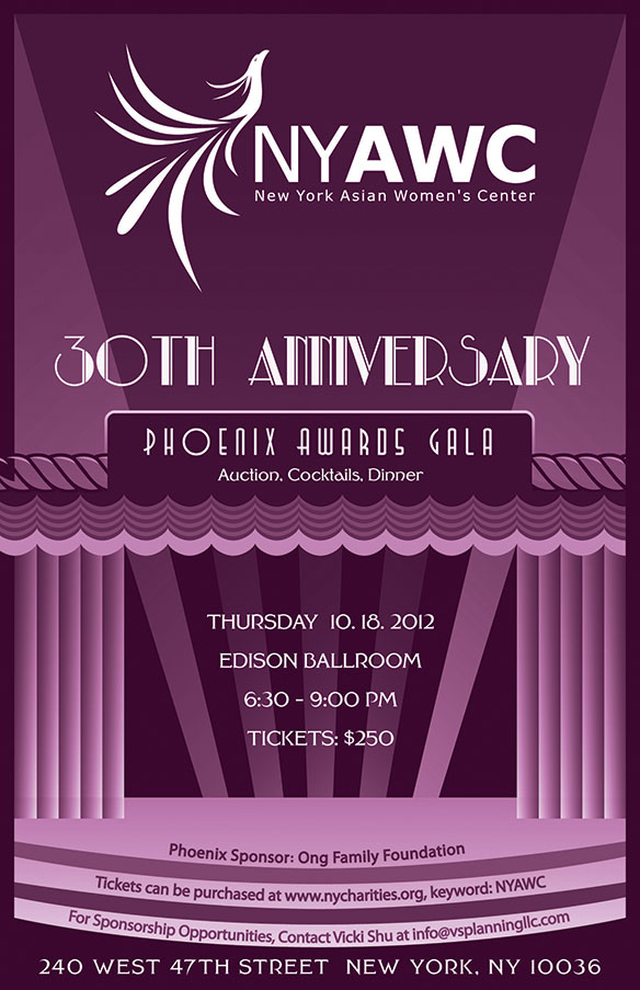 Please join NYAWC on October 18, 2012 as we celebrate 30 years of empowering women and children to live free of violence. Our joyous 30th anniversary benefit will be held at the beautiful Edison Ballroom.