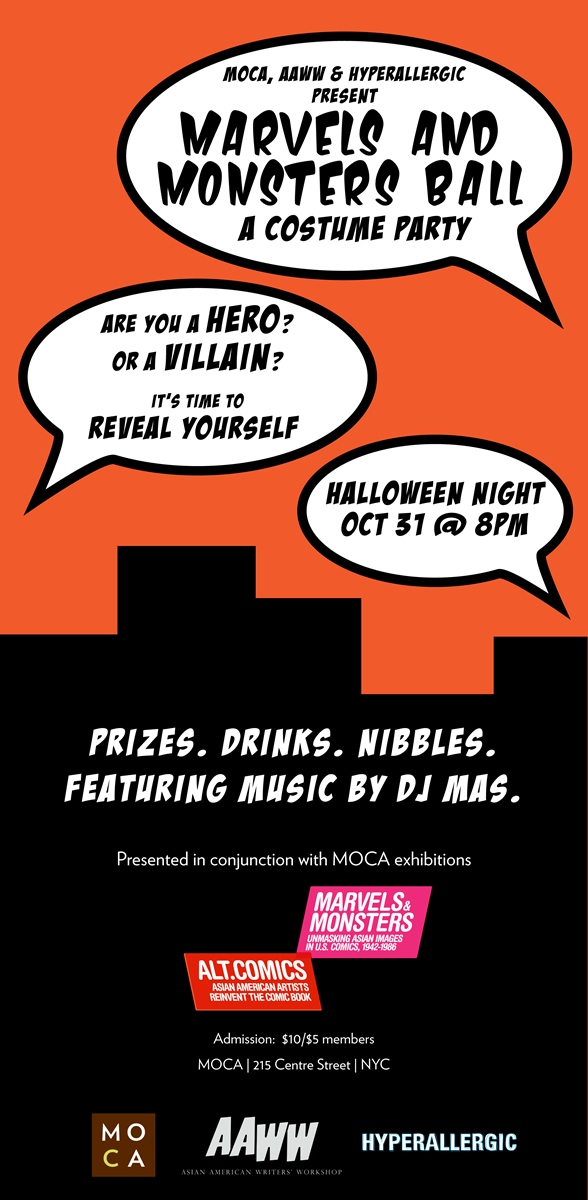 Celebrate with hosts MOCA, AAWW, and Hyperallergic on Halloween night. Inspired by MOCA’s new exhibitions we’re throwing a party! Channel your inner hero or villain and come dressed the part! Bring your friends! We’ll be ready with drinks, bites and music to dance to! Featuring music by DJ Mas.