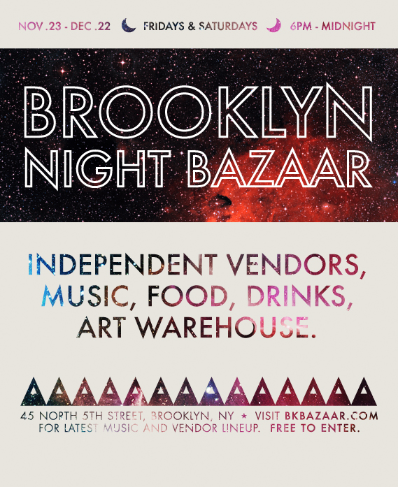 Inspired by the night markets across Asia, Brooklyn Night Bazaar is back for the holidays! Brooklyn Night Bazaar will bring together more than 250 of the borough’s most creative independent vendors, musicians, chefs, artists, breweries and wineries. This combined night market, art fair, food festival and concert series will return to its December 2011 home. For the first time, the entire Bazaar will be free and open to the public.