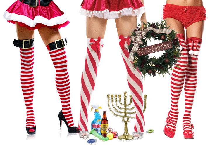 Gifts, games, props, and performances to entertain Santas and strangers alike.