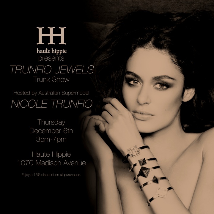 Trunk Show for TRUNFIO JEWELS by supermodel NICOLE TRUNFIO this Thursday, December 6th, presented by Haute Hippie at their Upper Eastside boutique (1070 Madison Avenue).