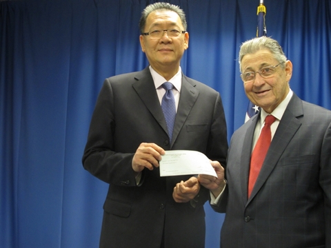 On December 7th, Ambassador Kao of the Taipei Economic and Cultural Office in New York (TECO-NY) publicly presented a check to Speaker of the New York State Assembly, the Honorable Sheldon Silver, at the New York State Assembly building in Manhattan.
