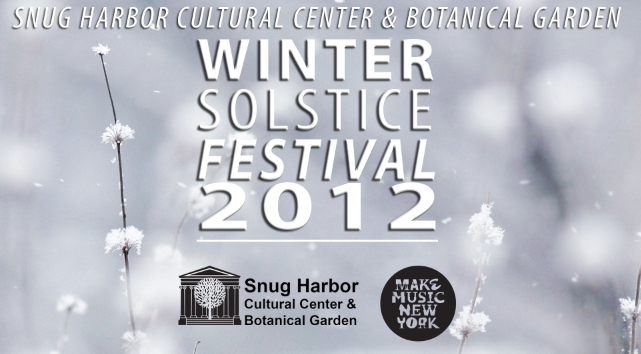 Join Snug Harbor Cultural Center & Botanical Garden and Make Music New York and others to present Winter Solstice Festival 2012 at the Snug Harbor campus on Friday, December 21, 2012 from 5 p.m. to 10 p.m.