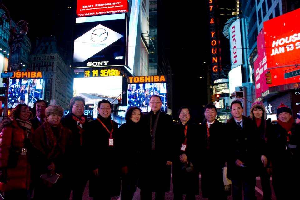 A commercial produced by Taiwan’s tourism authorities was broadcasted on a huge electronic screen in New York’s Times Square as around 1 million people waited hours to observe the famous ball drop in the countdown to the New Year of 2013. Both Ambassador Andrew Kao and Director of Taiwan Tourism Bureau Thomas Chang all attended the New Year’s Eve count down.
