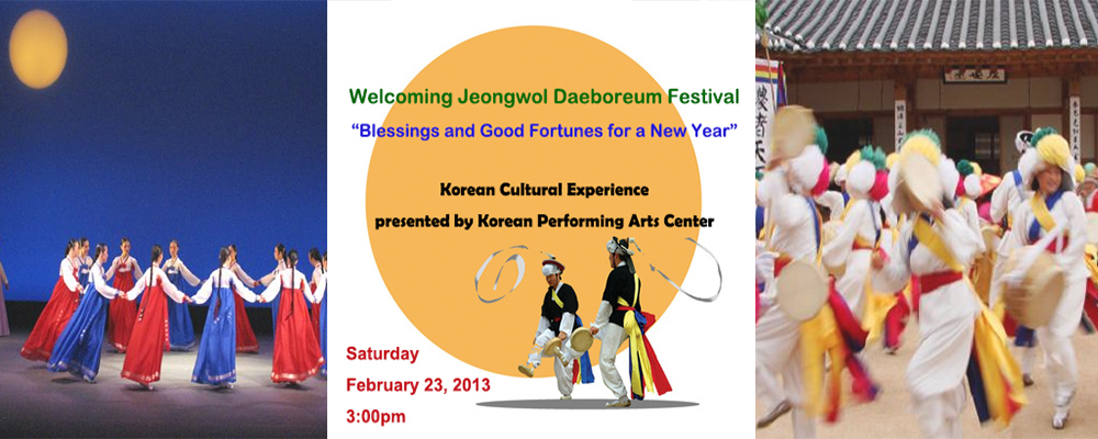 The Korean Performing Arts Center proudly presents the Korean Cultural Experience event on Saturday, February 23, 2013 at Edison Ballroom in NYC. The event celebrates Jeongwol Daeboreum, a Korean celebration, which refers to the fifteenth day of the lunar calendar, as well as the first full moon of the lunar year. There are many traditions and customs associated with Jeongwol Daeboreum in Korea. Some of these traditional performances include “Ganggangsullae” and “Jishin Balpggi (Stepping on the Spirits of the Earth) which will be performed as part of a special event in Times Square. In particular, The audience will participate in a series of exciting cultural experience programs which include the cracking of the Bureom nut, playing a traditional board game (Yut Nori), making of a wish for the New Year, folk dancing together, receiving a fortune in Korean calligraphy, making a traditional knot, and also trying on traditional clothes. Through this celebration, we hope to drive out negative energy, and bless the audience with good fortune, hope, peace, and prosperity in the New Year.