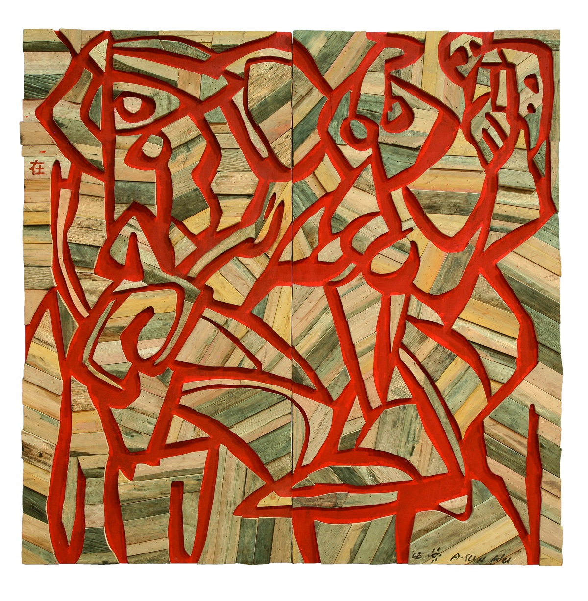 On the occasion of his first childhood trip alongside his father in the heart of the Taiwanese forest, A-Sun Wu invented a very personal vernacular of myths and legends. This “world artist” who has experienced the Amazon Basin, Africa and the Pacific Islands as well as Asia has synthesized their civilizations and cultural traditions while processing the legacies of western cultural legacies. Indeed, Goya, de Kooning, Picasso and Duchamp clearly influence his oeuvre.