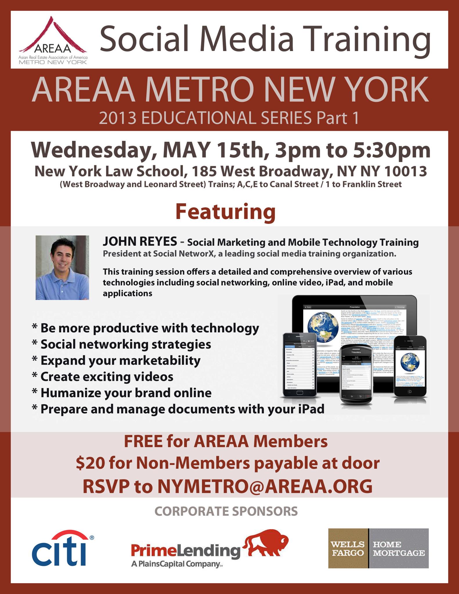 Come join AREAA in social media and mobile technology workshop designed for real estate professionals on Wednesday, May 15, 2013!