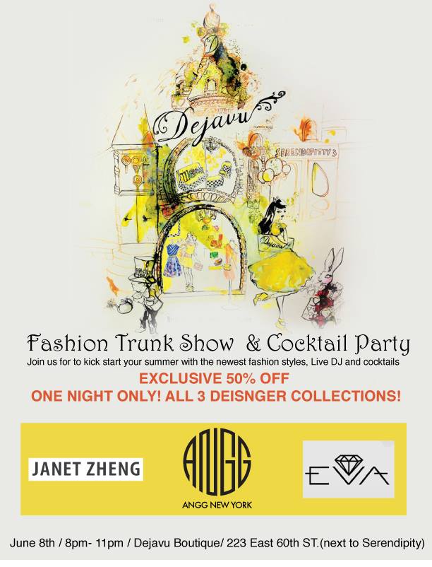 AsianInNY designers Angela Gao and Janet Zheng will be participating the trunk show. Join us for live DJ performing, fine snacks, and cocktail drinks. The fashion trunk show presents the latest collections of each designer with a One Evening ONLY EXCLUSIVE DISCOUNT!