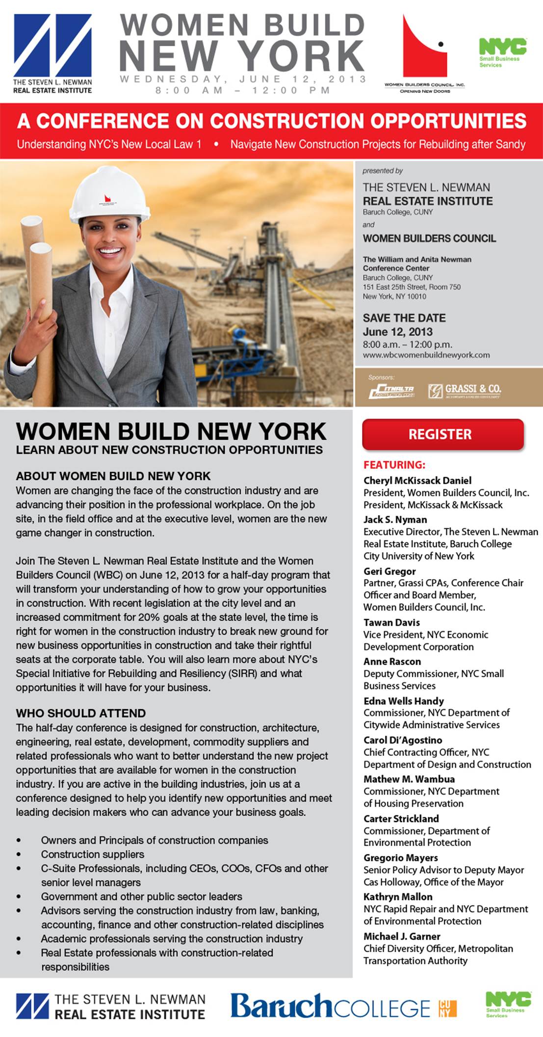 The conference will be held on Wednesday, June 12, 2013 from 8:00 am until 12:00 pm at the William and Anita Newman Conference Center, 151 East 25th Street, Room 750.