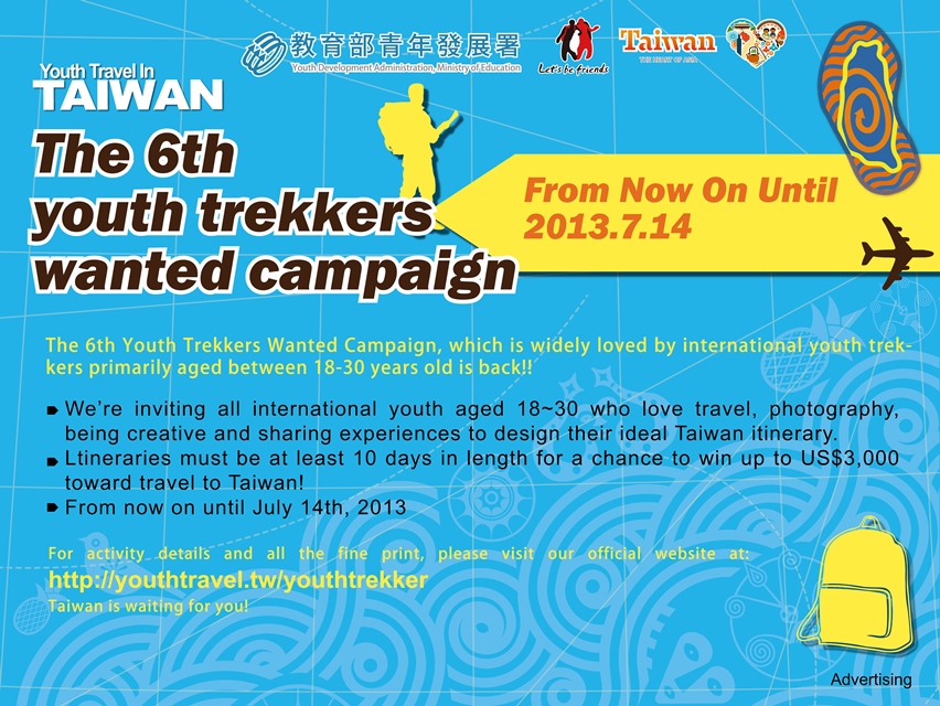 For details, please visit: http://youthtravel.tw/youthtrekker/