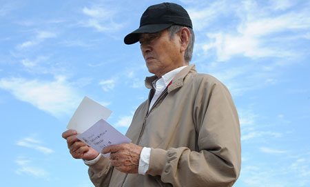 Ken Takakura’s 205th film is a solemn and sublimely sober road movie featuring an all-star cast that includes “Beat” Takeshi Kitano and Tadanobu Asano, among other heavyweights of the acting world. The last star of the golden age of the studio era, now an octogenarian, Takakura plays Eiji Kurashima, an elderly counselor at a prison in Toyama, a prefecture on the Japan Sea coast. His wife, Yoko (Yuko Tanaka), recently died of cancer at the age 53, leaving him with an illustrated card asking him to scatter her ashes in the harbor of the small Kyushu port where she was raised. Kurashima is puzzled by this request since she never mentioned it while she was alive, or said anything about her family for that matter, but he loads up his mini-van with supplies, as well as wooden furnishings he has handcrafted, and hits the road alone for Kyushu.