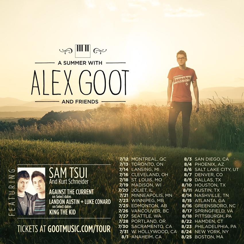 Take a break from your own summer adventures and join ours! A Summer With Alex Goot and Friends is the ONLY place you will be able to Catch Alex Goot performing his original and cover songs LIVE!