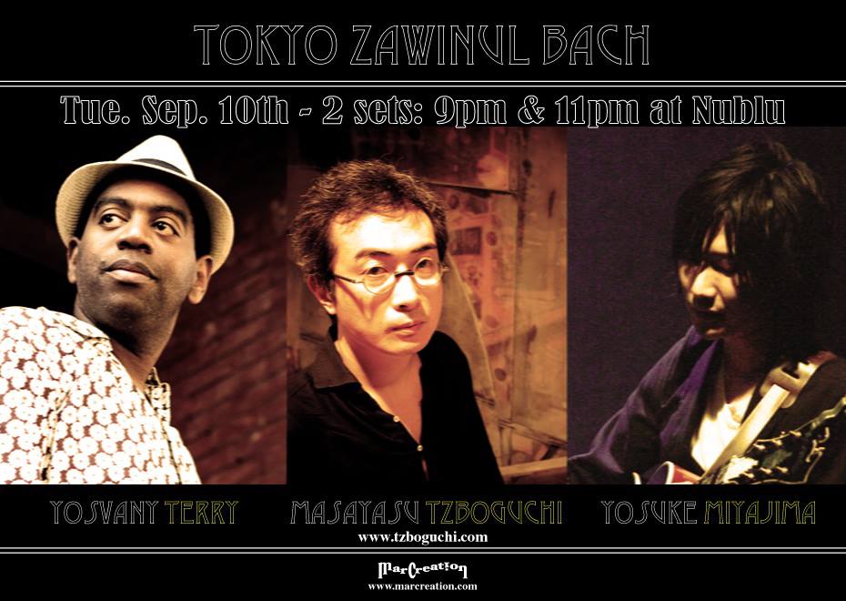 This is Manhattan debut of an unique electro jazz unit, Tokyo Zawinul Bach (TZB) lead by Masayasu Tzboguchi, one of the foremost keyboardists in Japan today. TZB integrates the algorithmic sequencing software “M” and would appeal to both jazz and club music fans. They made the first U.S. appearance at Studio B.P.M. in Brookllyn last year.