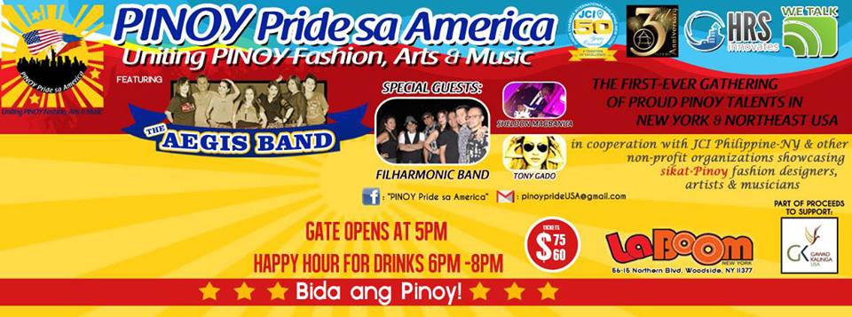 As part of its 50th year series of celebrations, JCI Philippine-New York (Jaycees), in cooperation with Pinoy Pride sa America, Inc., aims to showcase Pinoy artists, designers, musicians, models, performers, and community leaders during the first-ever “Pinoy Pride sa America” which will be held on Friday, October 4, 2013, from 5:00-10:00 PM at the Laboom Club in Woodside, NY. Proceeds from the event will benefit Gawad Kalinga, a Philippine-based poverty alleviation and nation-building movement.