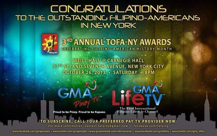 The Outstanding Filipino Americans (TOFA) of New York Tri State honors the exemplary Filipinos in our region. In the interest of transparency, there will be a Facebook voting which shall determine the winners . The search will culminate in an awarding ceremony at Carnegie Hall on October 26 to celebrate the achievements of Filipino Americans on Filipino American History Month in October.