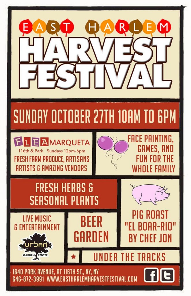 We expect over 30 local vendors including a Soul Food Tent, Urban Garden Center LLC’s pig roast called El Boar-rio, a Beer Garden featuring Sugar Hill Beer, a Children’s Zone courtesy of Bohemia Realty Group, 100 FREE trees will be given away courtesy of New York Restoration Project and MillionTreesNYC, Dessert and coffee by La Bella Torte, Live Music by Blue Maky and DJ Mellow G….fun for everyone.