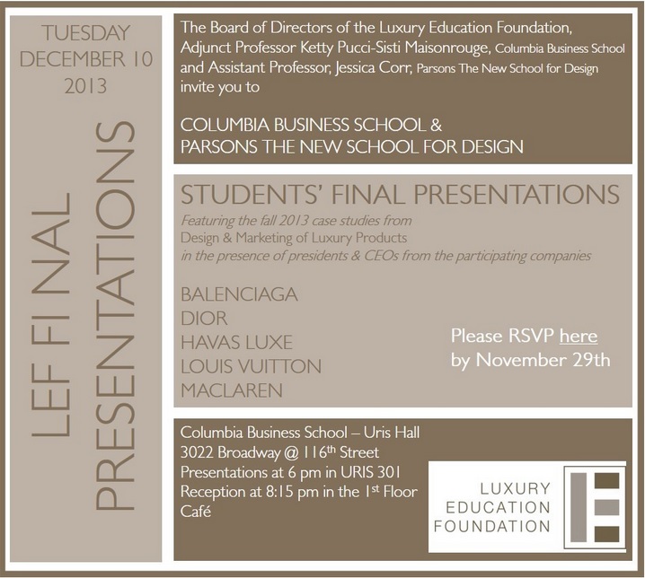 Featuring the fall 2013 case studies from Design & Marketing of Luxury Products in the presence of presidents & CEOs from the paricipating companies