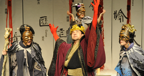 Shakespeare’s tale of ruthless ambition is reinvigorated through a highly dramatized Chinese adaptation where traditional props, wigs, masks, costumes, and musical instruments come together to create a horrific world where madness aches for power.
