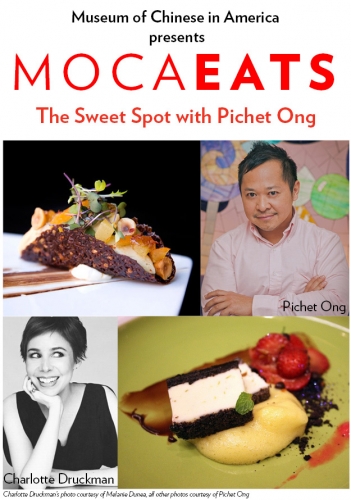 Dessert Chef Pichet Ong discusses his passionate relationship with desserts and his Asian-inspired creations, with Charlotte Druckman, a writer for Travel + Leisure, The Wall Street Journal, Bon Appetit, and many other publications about food and chef culture, and author of a book titled Skirt Steak: Women Chefs on Standing the Heat and Staying in the Kitchen. This talk includes a tasting of Pichet’s signature desserts and book signing of his recipe book The Sweet Spot. Pichet has been named one of the Top Ten Pastry Chefs in America by Pastry Arts & Design and Chocolatier, and was selected as a “Pastry Provocateur” by Food & Wine.