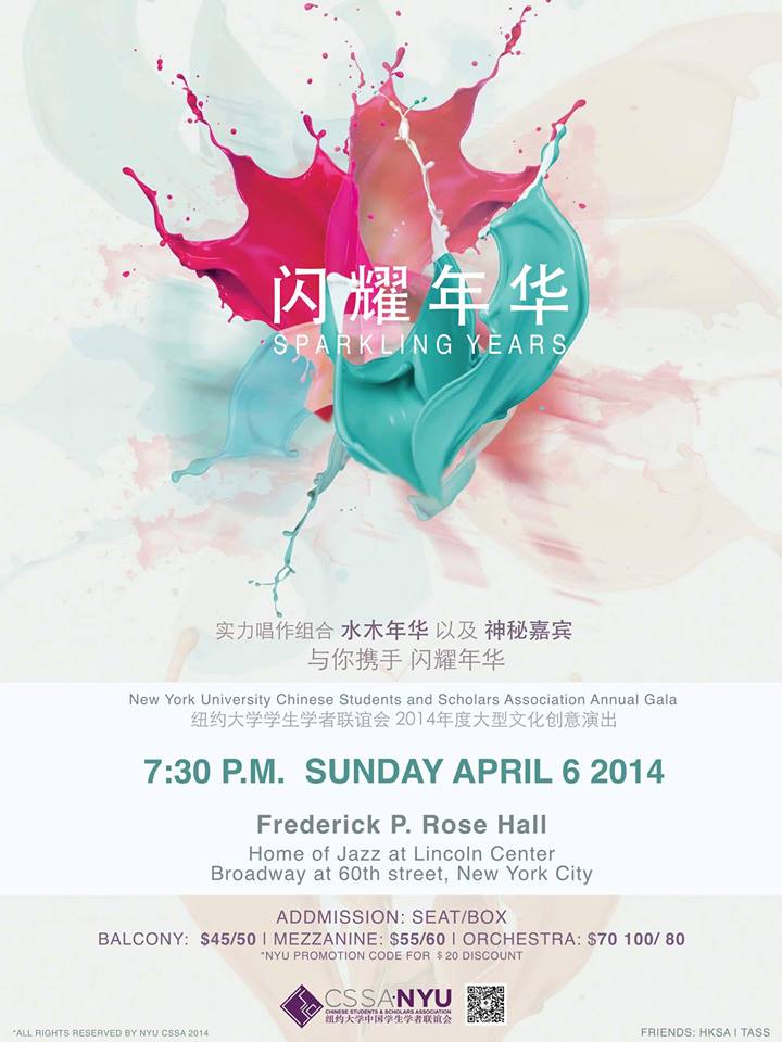NYU CSSA proudly presents its 2014 annual gala on Sunday, April.6th, back to the stage of Lincoln Center. After six months’ preparation, our original creative team is more than ready to surprise you with the ultimate sensory experience. With the presence of the talented songwriter group The Best Time, the performance will carry you through the passage of time, and bring you back to the old beautiful time.
