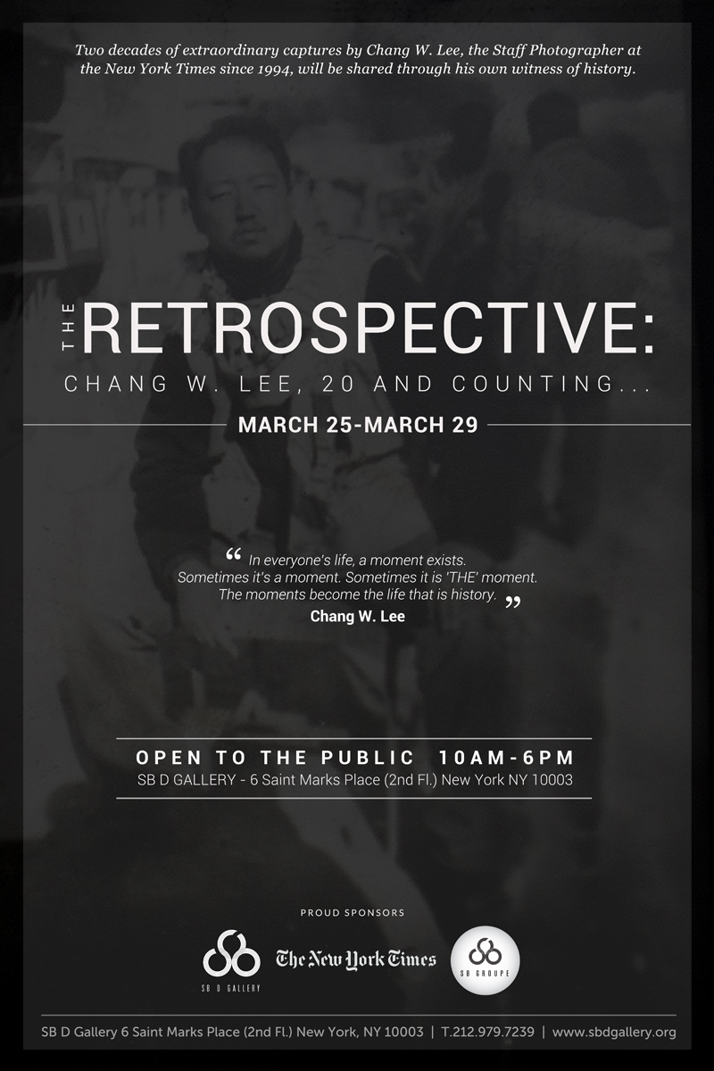 Two decades of extraordinary captures by Chang W. Lee, the Staff Photographer at The New York Times since 1994, will be shared through his own witness of history.