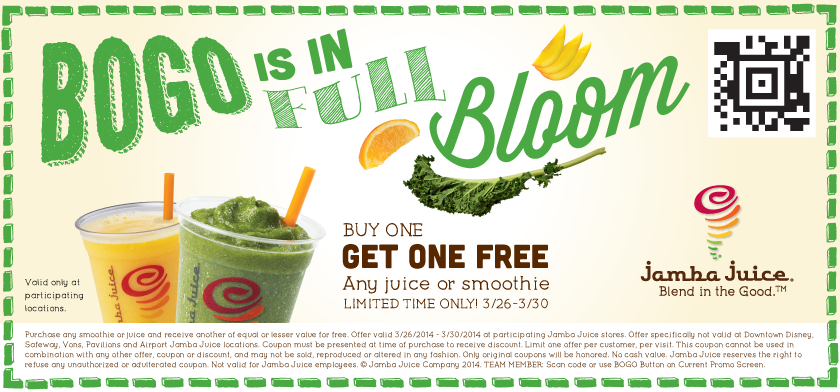 Purchase any juice or smoothie and we’ll give you another, free.