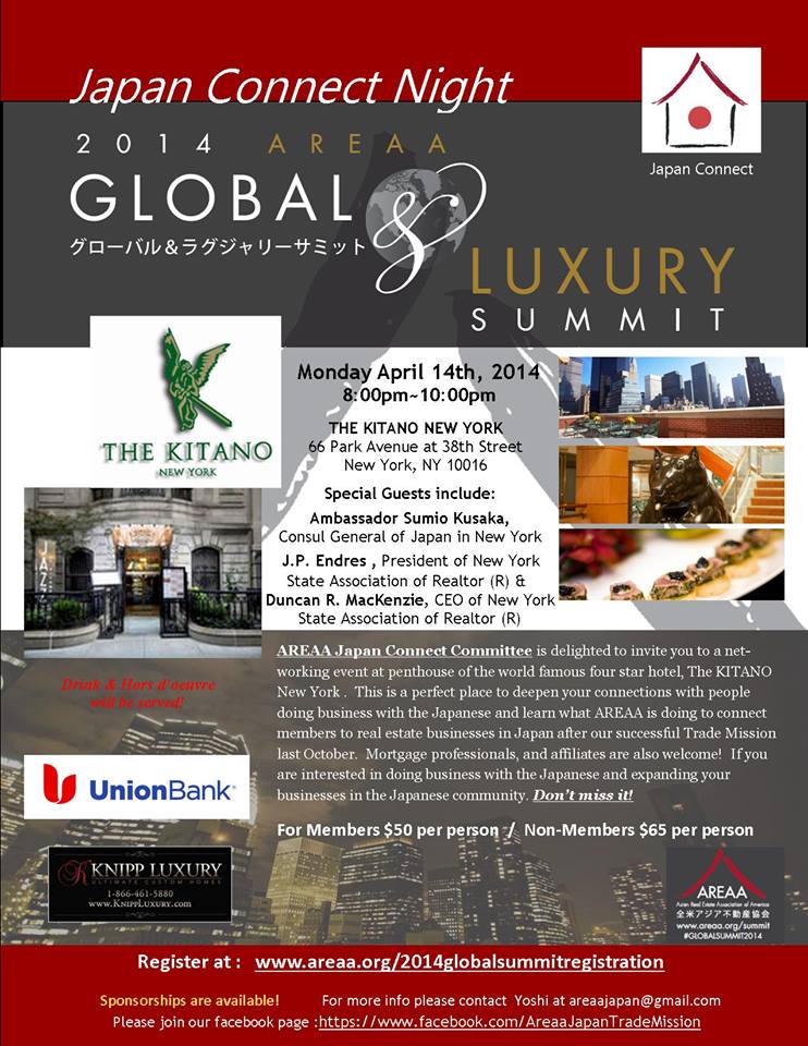 AREAA Japan Connect Committee is delighted to invite you to a networking event at the penthouse of world famous four star hotel, The Kitano New York.