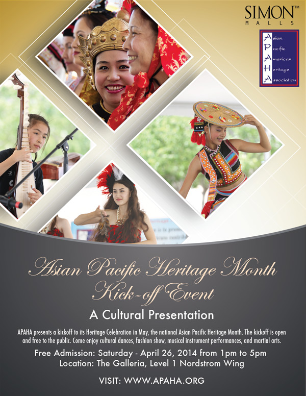 APAHA present a kickoff to its Heritage Celebration in May, the national Asian Pacific Heritage Month. The kickoff is open and free to public. Come enjoy cultural dances, fashion show, musical instrument performances, and martial arts.