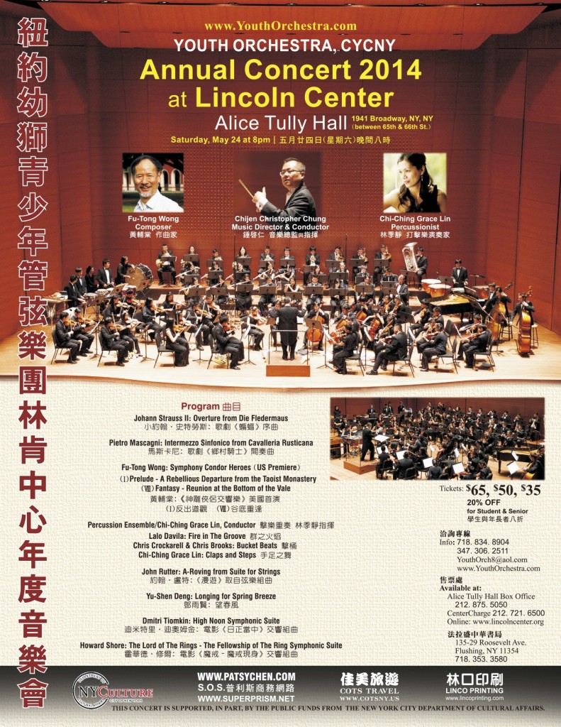 The Percussion Ensemble of Youth Orchestra, CYCNY, will perform a solo section conducted by percussionist and composer Chi-Ching Grace Lin.