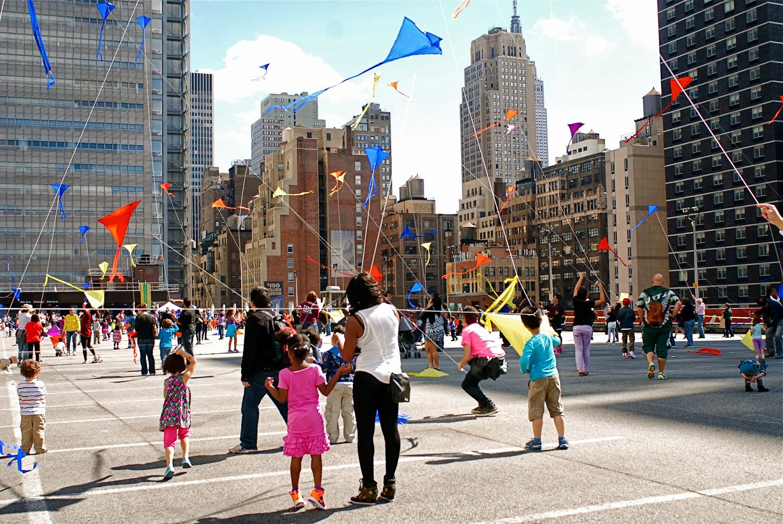 Using recycled materials, children and their families draw inspiration from the park’s fantastic view of the Manhattan skyline to build expressive kites, and then fly them in the park.